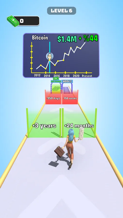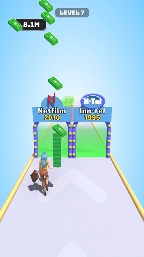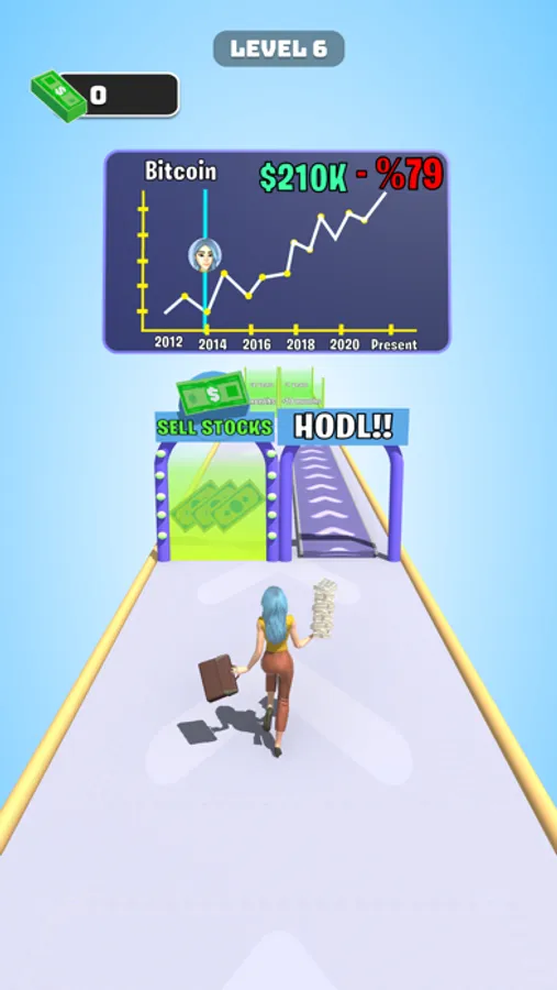 Buy stocks at various companies and travel through time to sell them at their peak.
