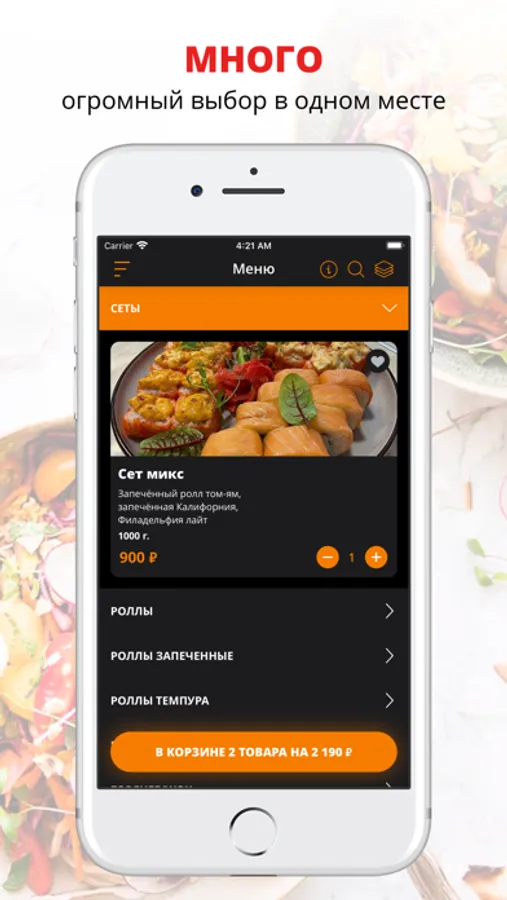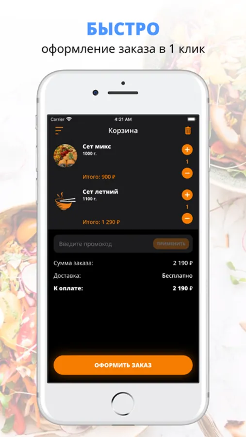 Скачивайте наше приложение, оформляйте заказ и наслаждайтесь любимой едой, где бы Вы ни были! Приятного аппетита!