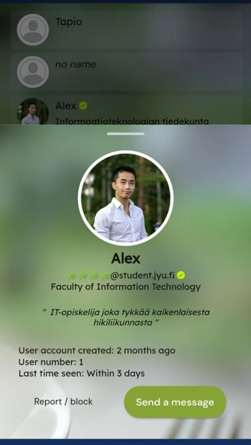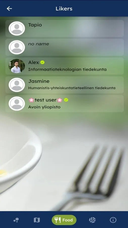 Only one person behind it all. This menu app is Alex's personal hobby project. The goal of the menu app was to make students’ lives easier and to gather student canteen menus into a single app that would provide students with easy and straightforward access to finding student restaurants and checking menus. During the development of the app, new development ideas came to the developer's mind, which is why the app became more than just a restaurant menu app. The application is non-profit and the developer does not receive any revenue from the app or the development of the application. To support the development of the app, please rate and tell your friends about the app!