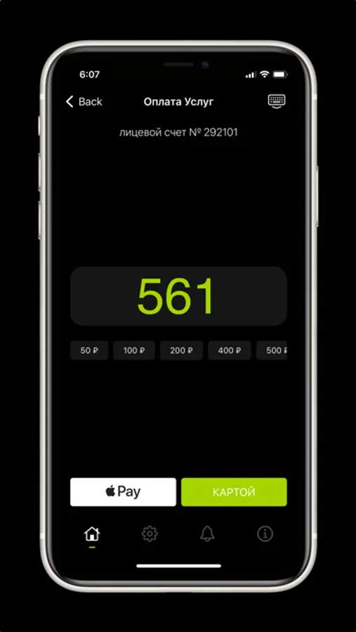* можно оплатить услуги с помощью ApplePay через карту МИР или любой картой - сумма к оплате подставляется автоматически