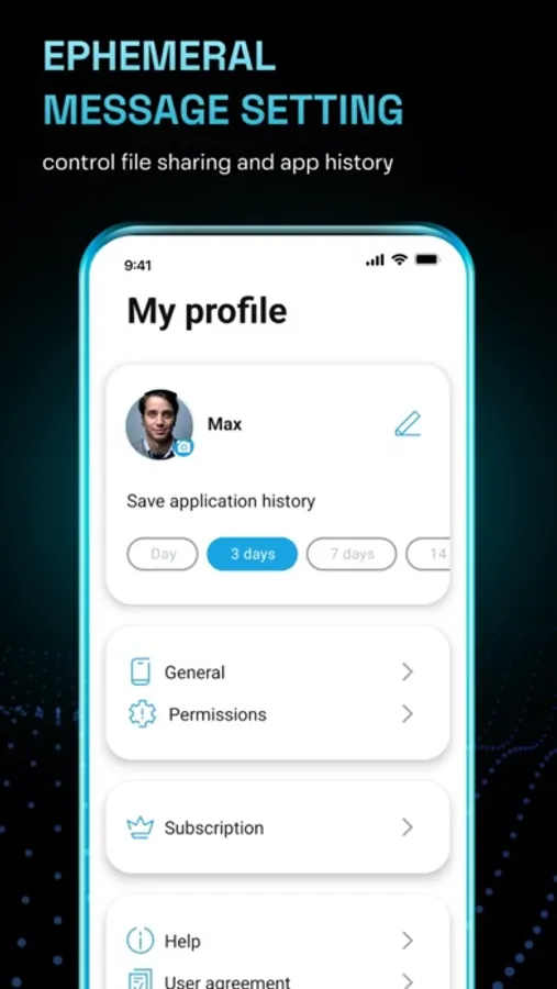 All messages and files are automatically deleted from the device after specified amount of time. It is 14 days by default. You can set up auto-delete time for 1, 3, and 7 days. Metadata is deleted along with messages and files.