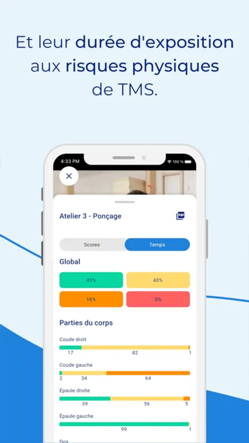 Now compatible with KIMEA App, connected gloves give you greater precision in your analyses. They automatically measure your operators' wrist movements.