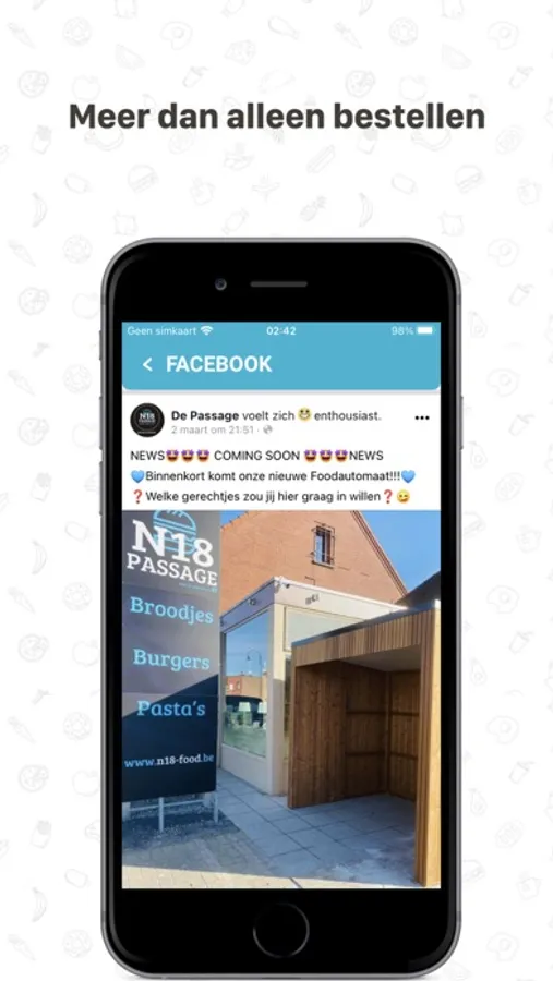 Met deze handige app bestel je snel en eenvoudig bij alle vestigingen van N18! Ontdek het assortiment, maak uw keuze & geniet van een heerlijk krokante friet, lekkere snack of stevige burger! Liever een belegd broodje, salade of compleet gerecht? Bij N18 food is er voor ieder wat wils.