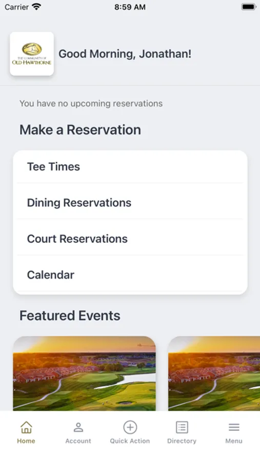 Download the Club at Old Hawthorne app to easily:
