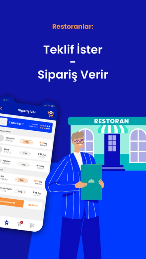 Restok uygulaması restoranların kolayca sipariş vermesini, siparişlerini takip etmesini ve tedarikçileri ile anlık olarak konuşmasını; tedarikçilerin ise siparişlerini takip ederek restoranlar ile anlık iletişim kurmasını sağlar.