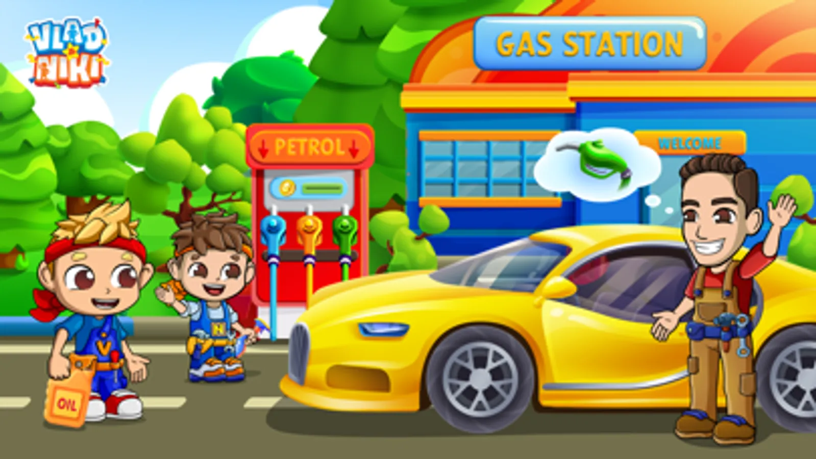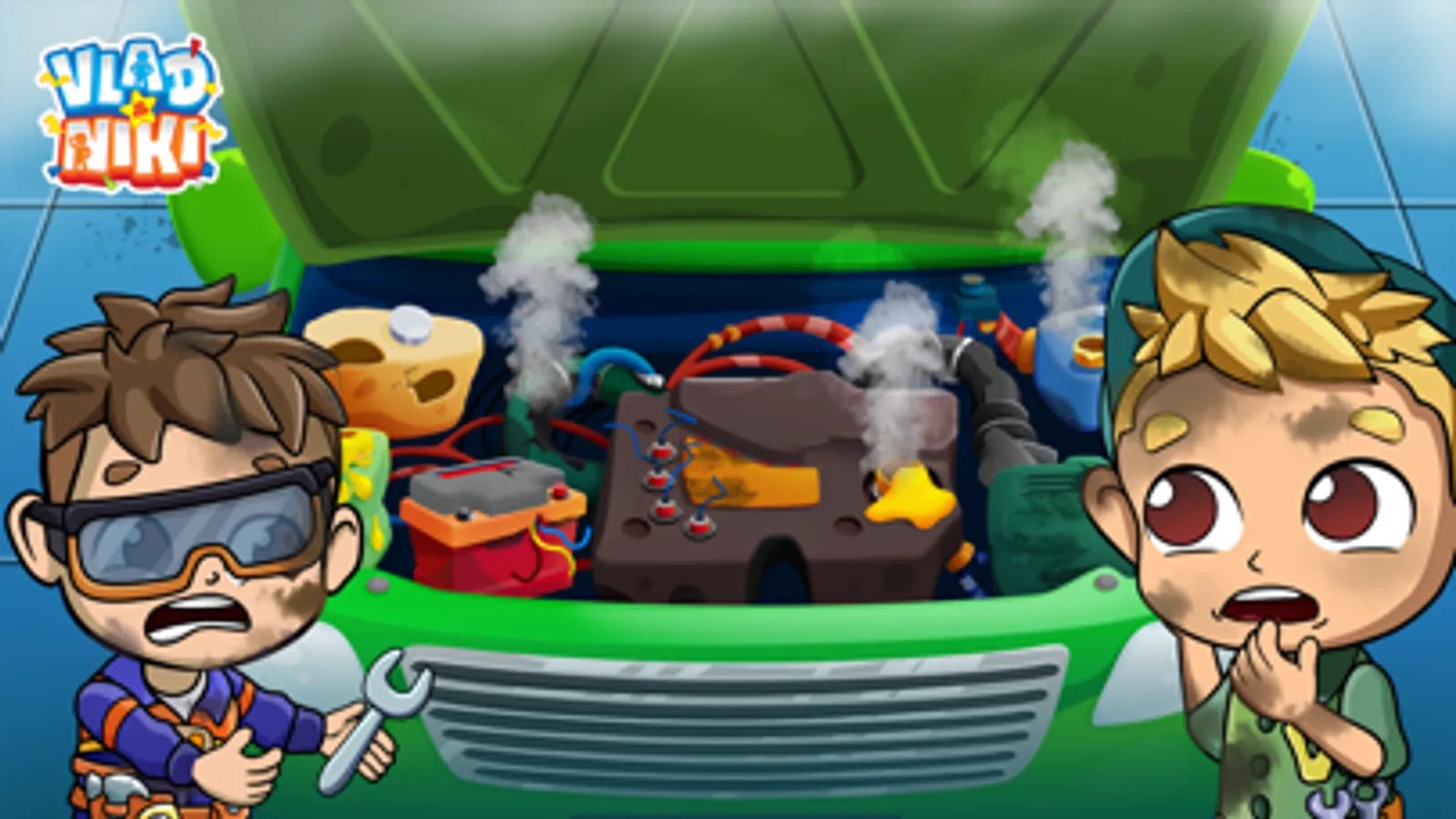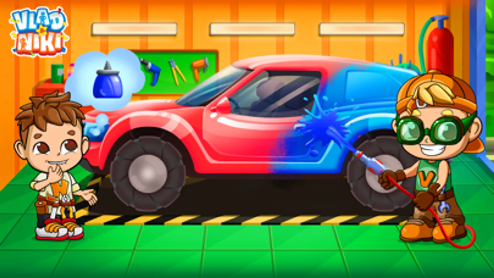 Vlad and Nikita fancy cars and garage work. Daddy can help them to fix, fuel, wash and paint all vehicles. Car service is very popular and has all tools for repair work. Professional help will be given urgently. Flat tire, broken engine or scratches could be fixed very quickly. Try yourself as a mechanic and fix all problems.