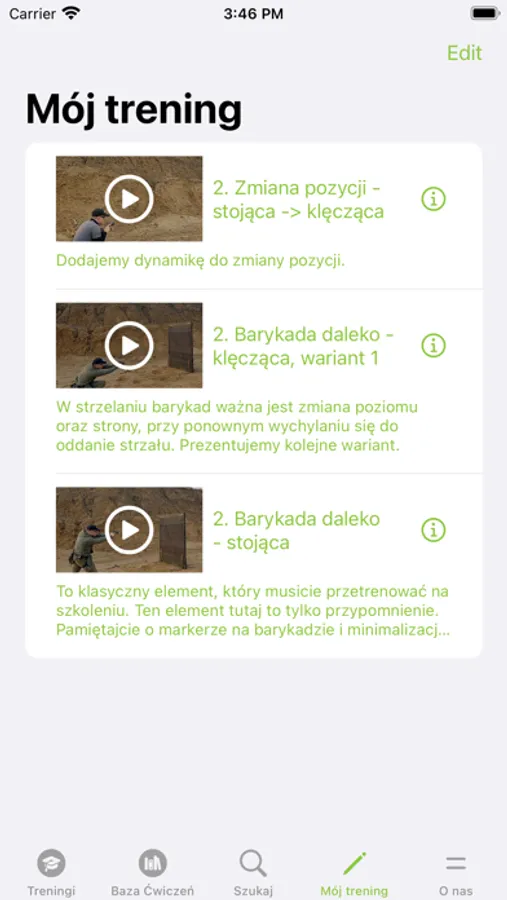 Aplikacja pozwala skorzystać z gotowych przygotowanych treningów albo wybrać elementy z bazy ćwiczeń i ułożyć je we własny trening.