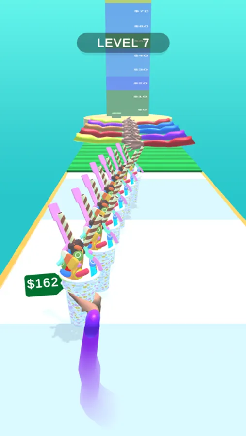 Pick and stack as many cones as you can and create your favorite ice cream with your favorite flavors and toppings.