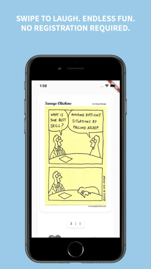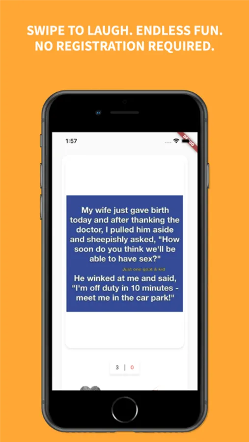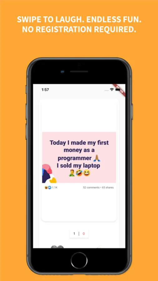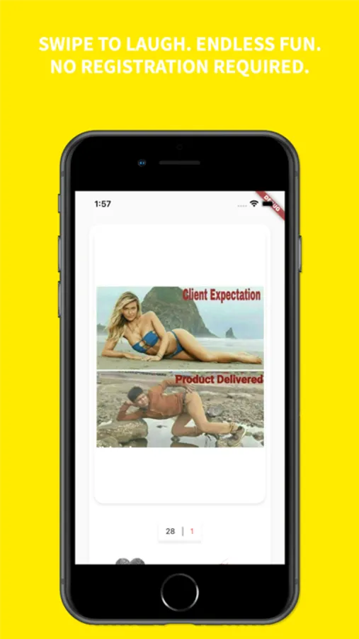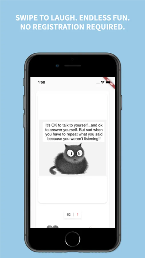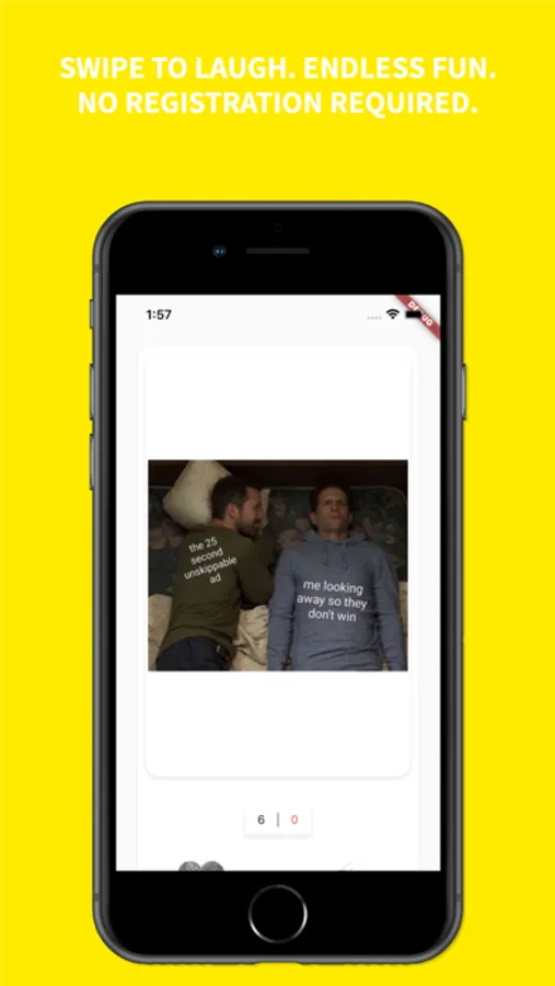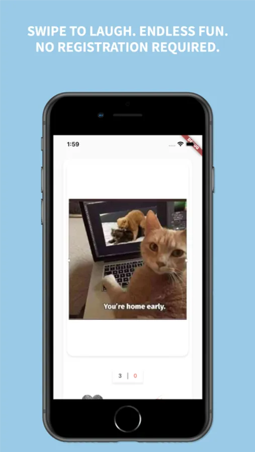 SWIPE TO LAUGH. ENDLESS FUN. NO REGISTRATION REQUIRED.