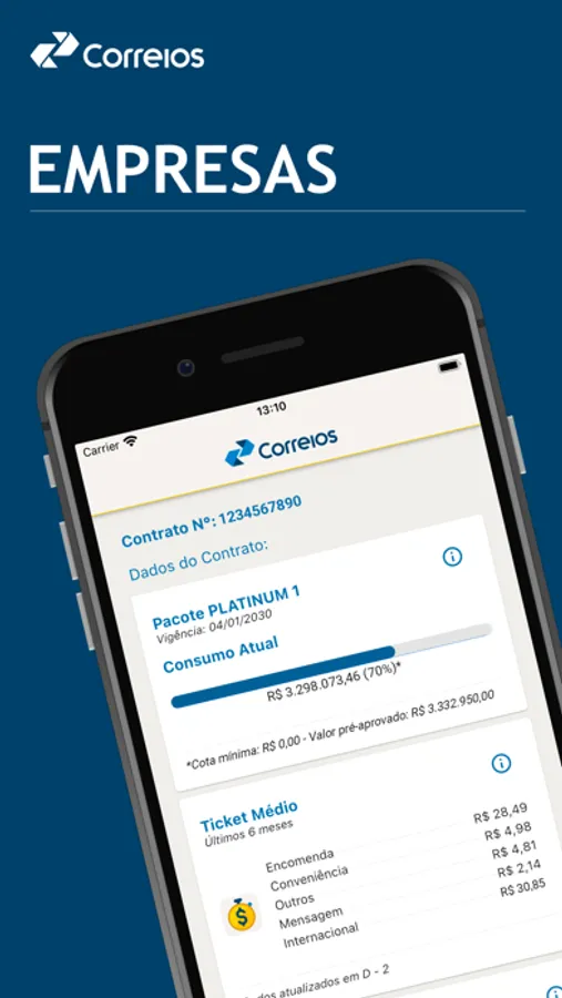 O Correios Empresas é uma plataforma digital pra você, que possui Contrato com os Correios e necessita, de forma rápida e segura: