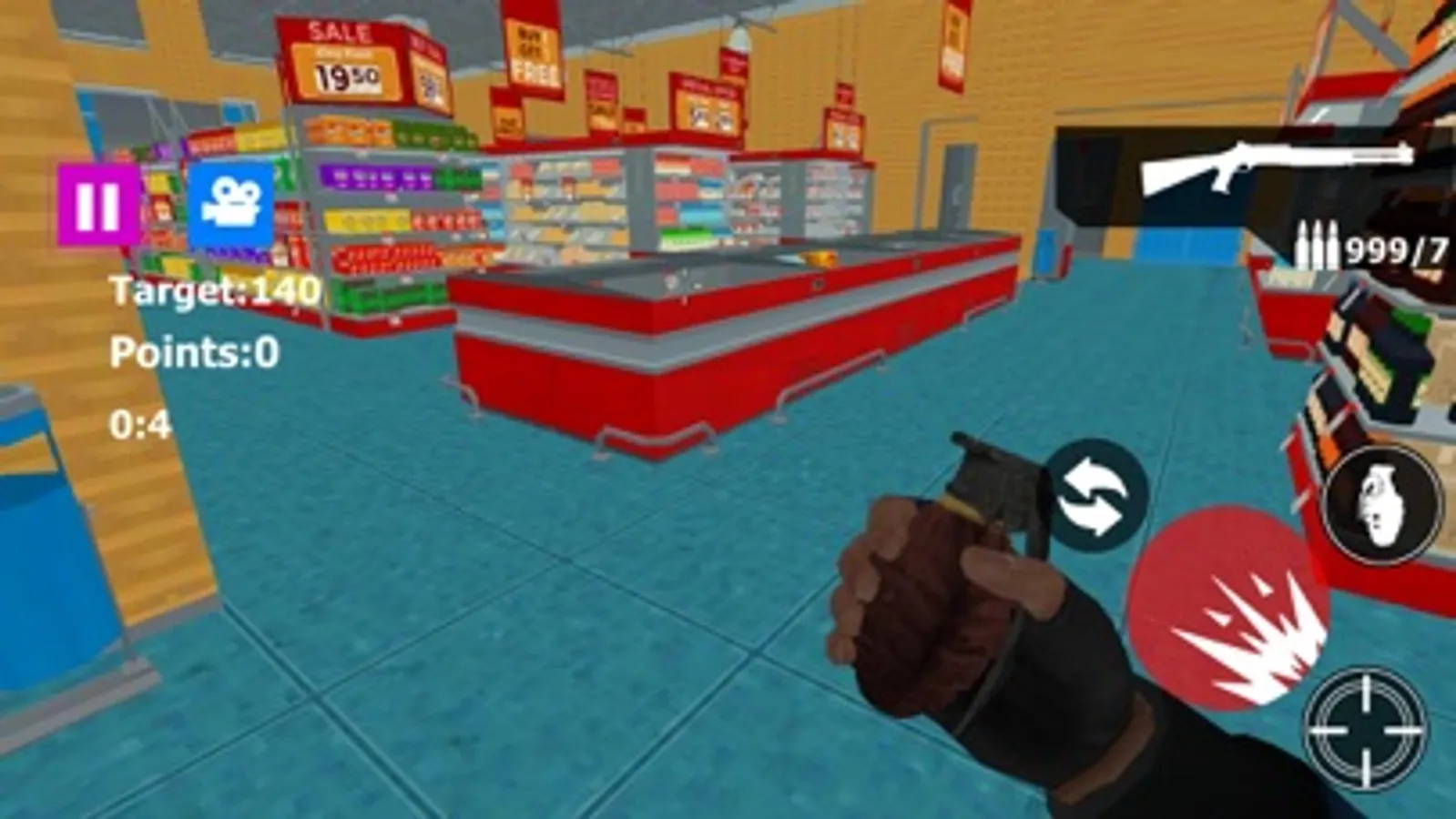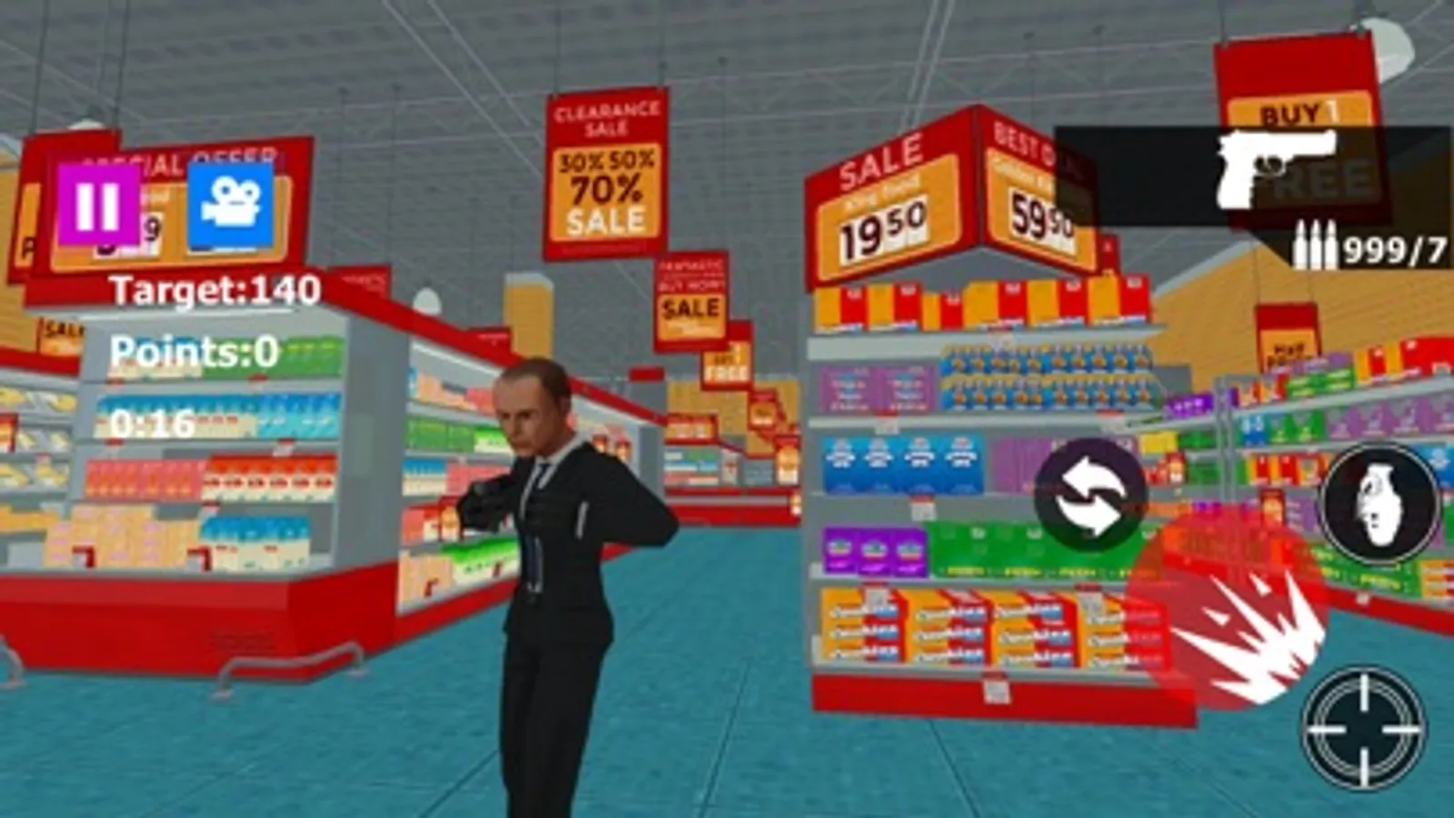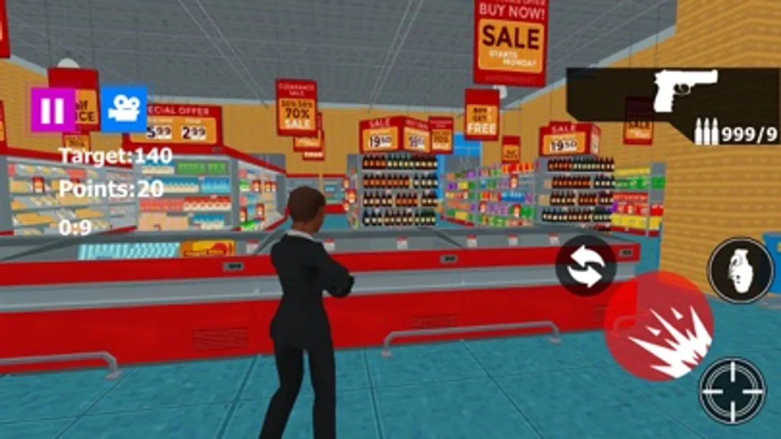 Destroy and Smash the super market and Mall using powerful destructive weapons like as Pistol , Shotgun, Sniper, AK47, MP5,MP4,Rocket Launcher , Katana .Knife and others.