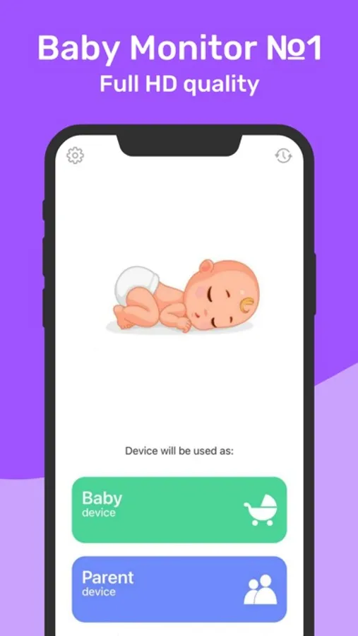 Note: Baby Monitor requires at least two devices with the app installed-one to serve as the baby unit and the other as the parent unit.