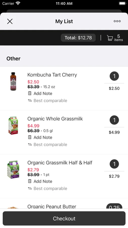 • Revisit previous orders or create a favorite list for a quick start to your shopping list