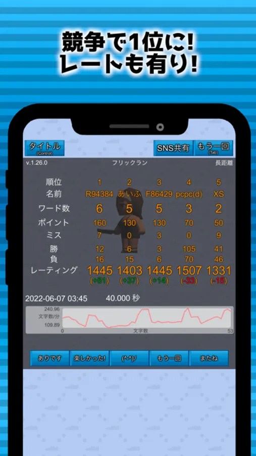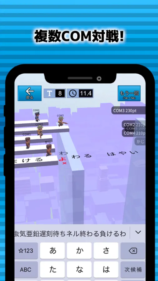 日本語で、タイピングして、アバターによる徒競走をしよう。