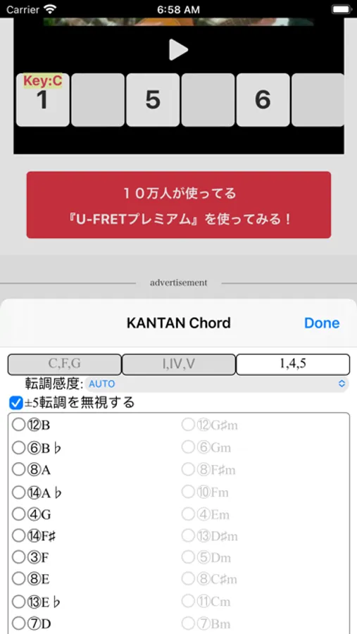KANTAN Chordが推定したキーが間違っていたり演奏し難い場合は変更してみてください。