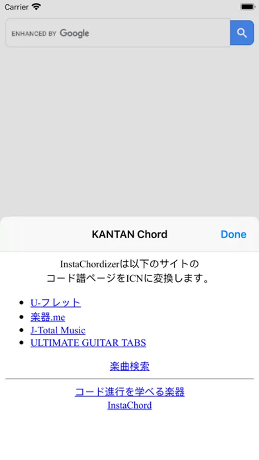 takahiro氏によるKANTAN Chord対応4サイト一括検索ボックス( https://cse.google.com/cse?cx=bf7c08fec081ac39a )を開きます。