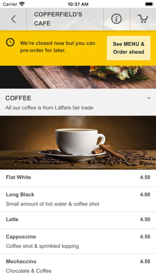 - Real time confirmation of the order - meaning that the cafe staff confirms your order right away, with the estimated ready-time.