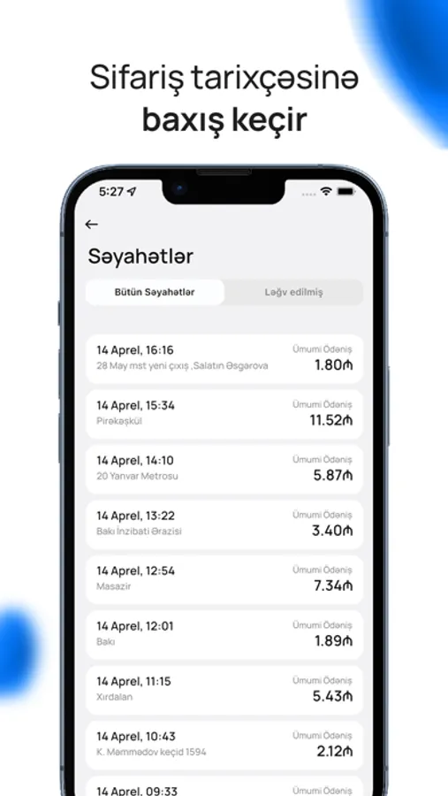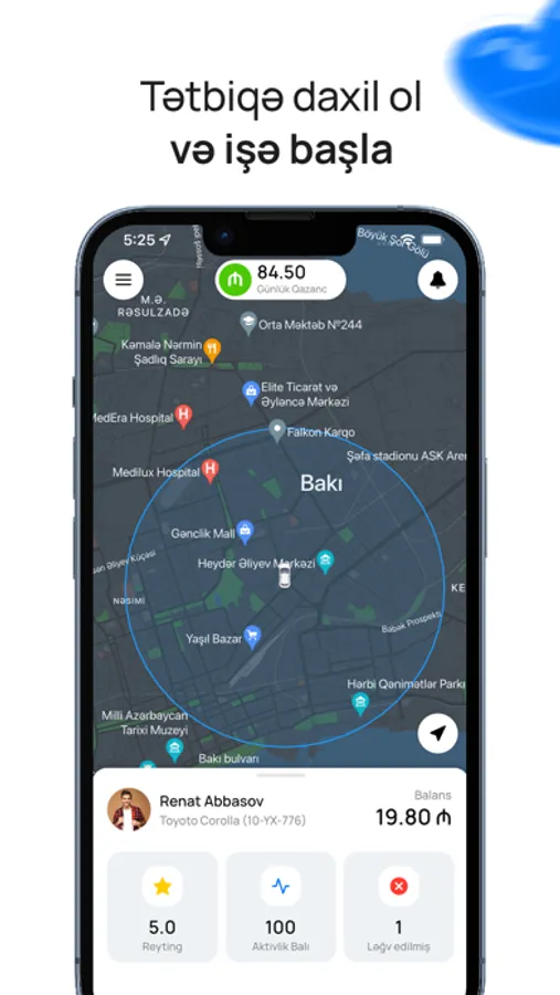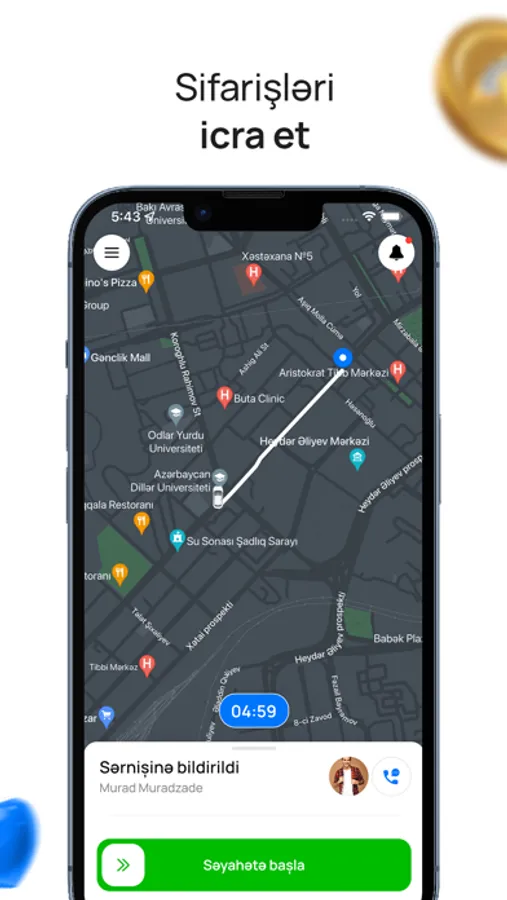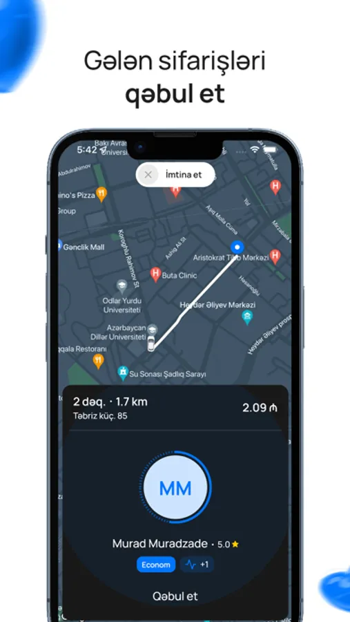 Sifarişi qəbul etməzdən öncə siz qarşılama yerini, nə qədər məsafədə olduğunu, həmçinin sifarişin məbləğini əvvəlcədən görə bilərsiniz.