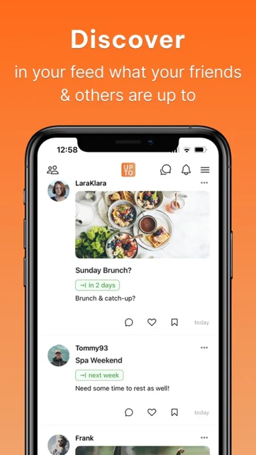 - "Before discovering Upto, I oftentimes missed opportunities to join events because I didn't learn about them ahead of time. With Upto I'm always in sync with my friends"