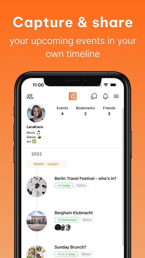 Upto is a very young app. We aim to become the one-stop solution to discover, talk about and organize events for you and your friends. We look forward to your feedback to make that vision a reality!