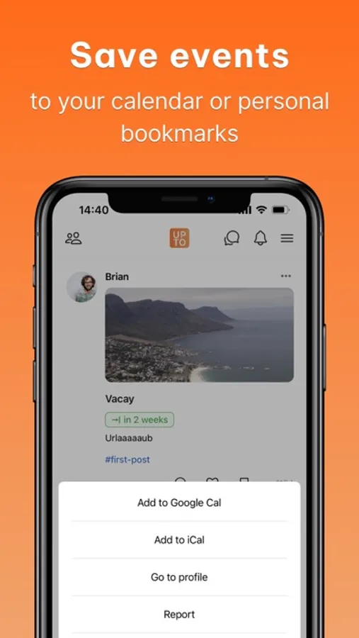 - Sync events on Upto with your calendar