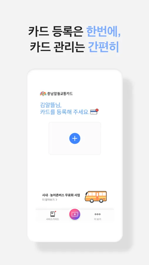앱으로 쉽고 편리하게 충남알뜰교통카드를 관리해보세요.