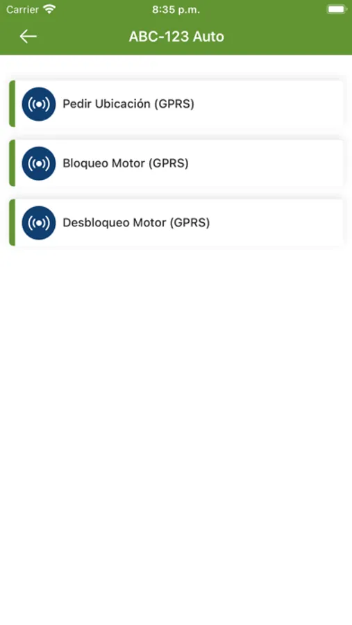 * envío de comandos de bloqueo/desbloqueo de motor desde el app