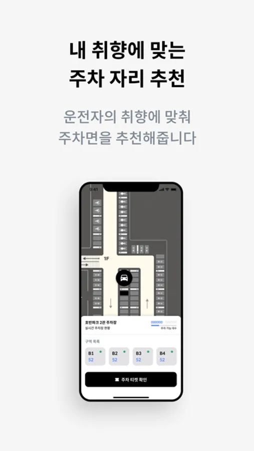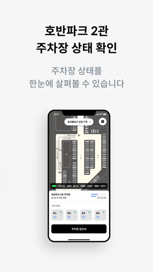 - 주차장이 얼마나 붐비는지 미리 걱정할 필요 없어요. 주차장의 상태를 한눈에 확인할 수 있습니다.