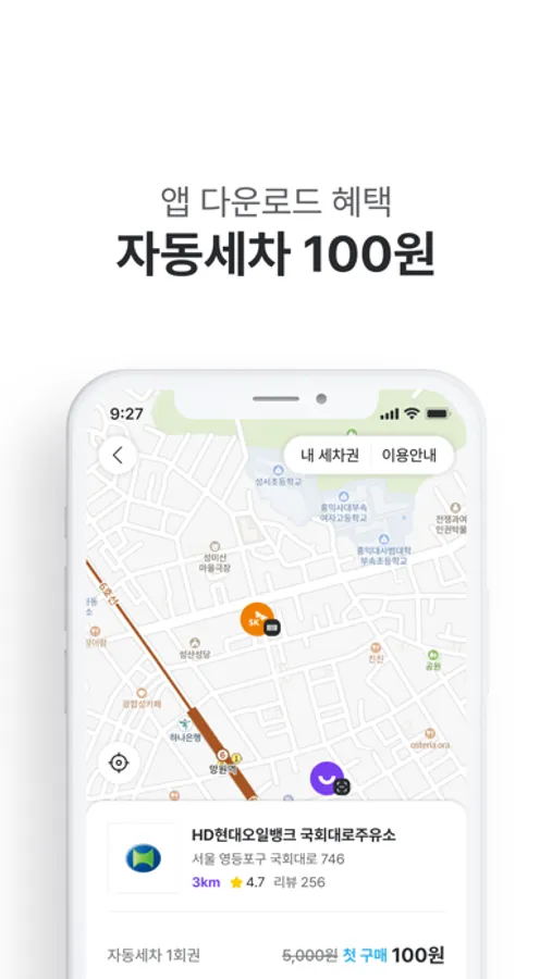 · 자동세차 : 주유하지 않아도, 앱 설치하면 무조건 100원