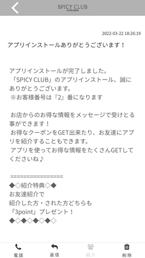SPICY CLUBのアプリをSNSを通じてお友達に紹介する事ができます。