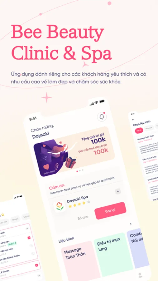 Ưu đãi độc quyền dành riêng cho khách hàng tải app. Sau mỗi lần sử dụng dịch vụ, bạn sẽ nhận được điểm tích lũy tương ứng để đổi những phần quà giá trị từ Spa.