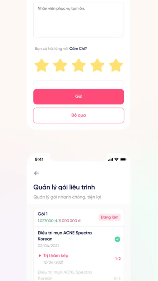 Theo dõi liệu trình điều trị, lịch sử tiêu dùng cũng như chi phí phát sinh trong quá trình điều trị ngay trên app