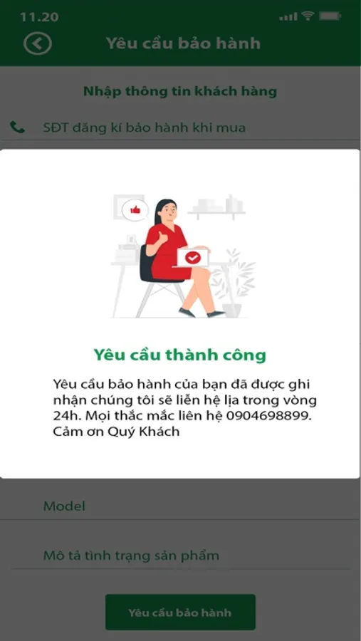 Đặt lịch bảo hành, Báo thông tin hỏng, lỗi sản phẩm về trung tâm bảo hành.