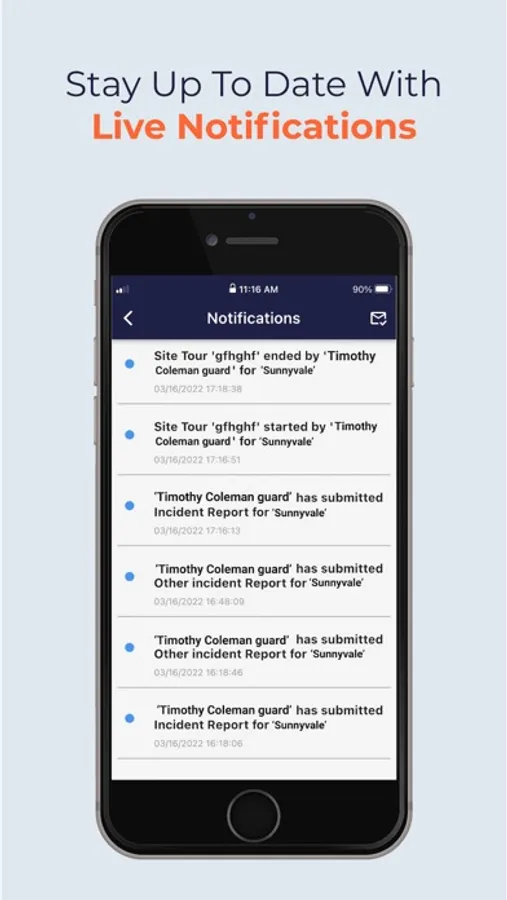 GuardsPro client app is part of the GuardsPro enterprise Physical Security Management platform which allows the Clients of security guard companies to login using their client web portal credentials and monitor the security operations on their properties. Using GuardsPro Client App, the users can view a live interactive map of their property along with live guard location using GPS tracking. The users can access live updates in the form of push and in app notifications for every activity of the guard such as submission of reports, site tours, incidents etc. Besides getting updates, the user can also view reports. The GuardsPro client app is designed to make it easy to access the important information concerning the post site on the go.
