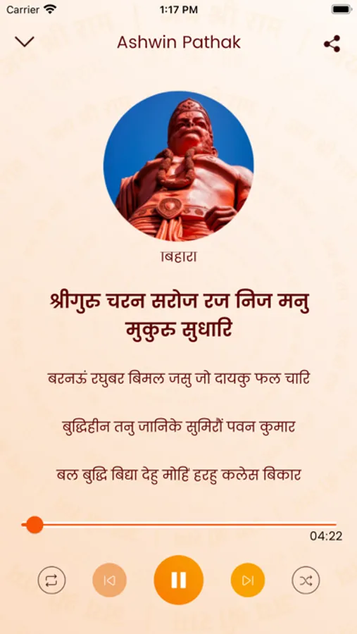 Listen to the Hanuman Chalisa while reading the Hindi language on the screen.