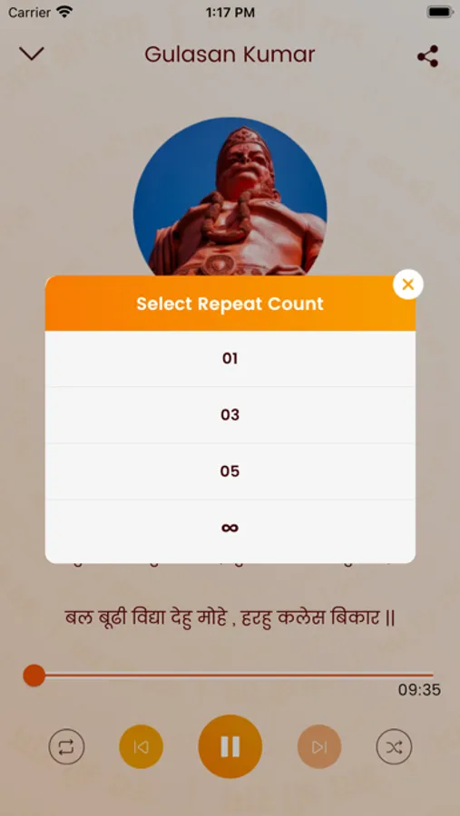 Hanuman Chalisa will automatically continue once you have finished answering calls.