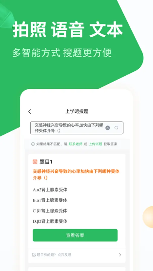 超2千万试题资源,支持语音和拍照搜题,检索速度快,答案准确率高。