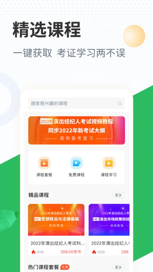 精选特色视频课程,足不出户体验专业的课程讲解,快速掌握考试技巧熟悉解题思路。还有包括沟通表达、时间管理、情感心理、办公软件入门&进阶等兴趣课程学习。