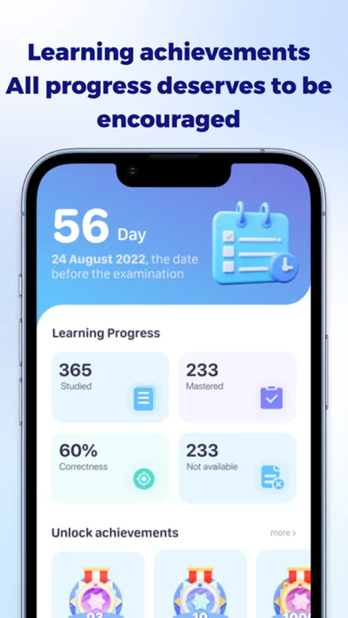 The learning process is boring and we have designed the achievement system to make it fun. When you complete a task, you will receive a medal, which is a testimony to your efforts and encouragement.