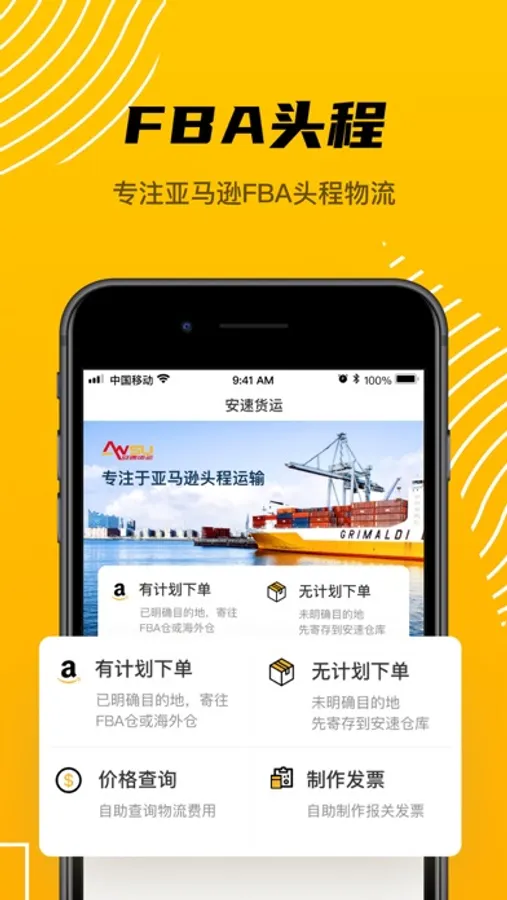 安速货运App是由深圳市安速国际货运代理有限公司推出的一款移动跨境物流管理平台,专注于为跨境电商卖家提供快捷高效的FBA头程物流运输服务。安速货运专业提供到欧洲、美国、英国、加拿大、日本等国家和地区的亚马逊FBA仓库及其他海外仓的跨境头程物流运输服务,支持在线快捷下单、免费上门取件、价格查询、运踪实时更新,快捷制作报关发票等便捷货运服务。