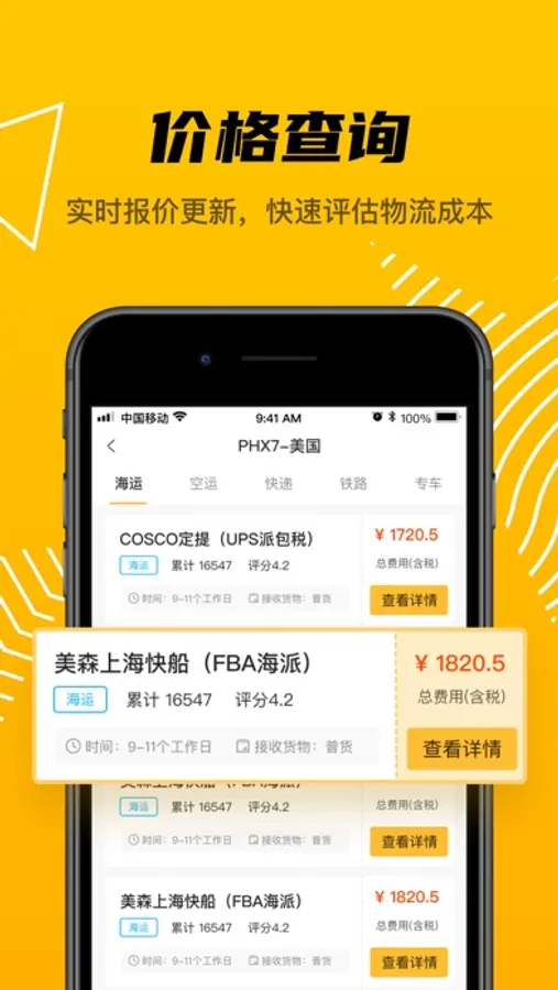 支持用户自助查询货运报价,平台提供实时物流报价,用户可比较渠道价格,快速评估物流成本。