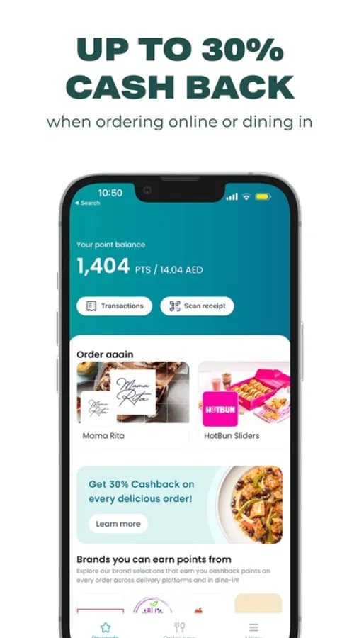 Earn cashback when ordering from your favourite restaurants, whether you order through our app, dine at any of our restaurants or order delivery through our partners.