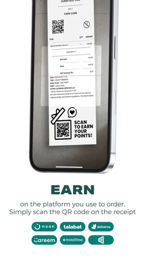 You can even collect points through orders placed with our partners. Simply scan the QR code on your receipt and your cashback points will be added to your account.