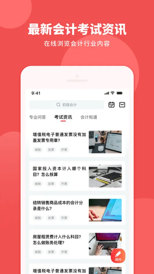 会计网APP是集刷题、听课、答疑、资讯为一体,专为初级会计及财会人员打造的在线会计课程学习备考和会计实操技能提升平台。优选精品课程涵盖初级会计职称、会计实务、会计实操技能提升,课程范围广,质量高;视频录播课程、配套会计题库练习、考前模拟测试、名师讲解,在线答疑服务,力求帮助广大会计学子实现多位一体全面学习。