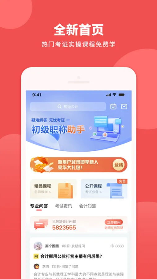 新人会计用户下载即送福利。更多精品会计实操课程全免费学习,随学随问,专家在线
