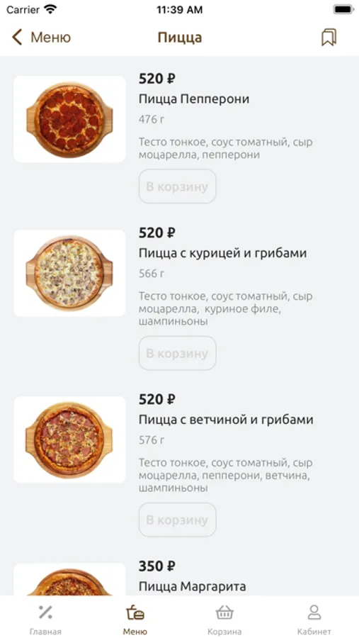 • пицца – девять популярных разновидностей, включая веган-варианты;