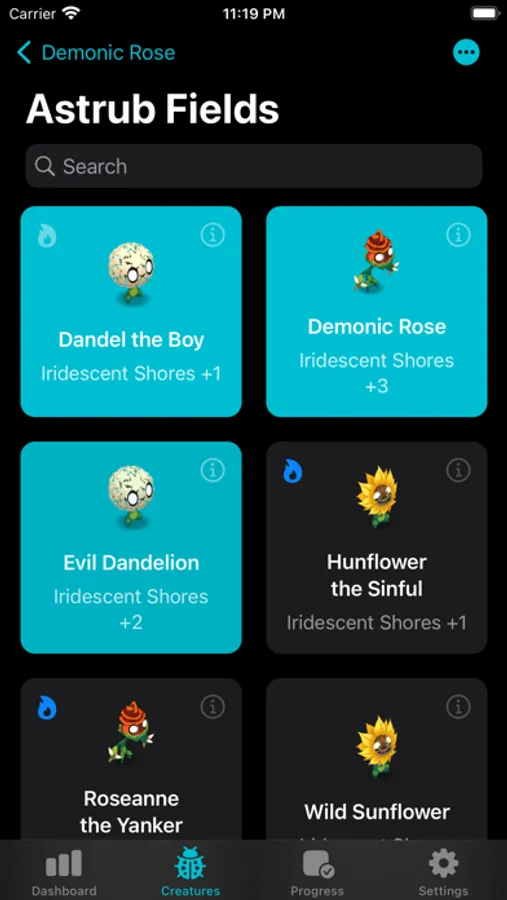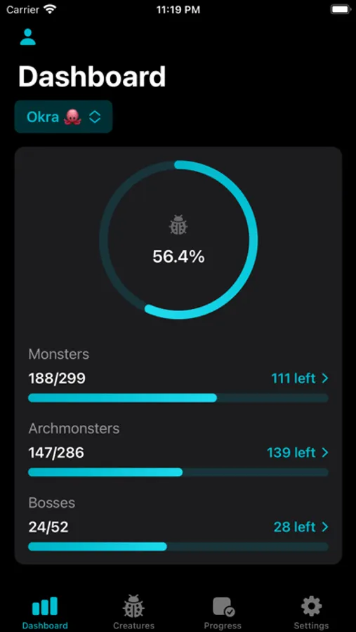 It allows you to visualize your overall progress, to manage and track the monsters, bosses and archimonsters that you've captured or not. You can track the quest on multiple characters, and save time and kamas, by filtering the monsters you are looking for by area, step, family and soul stone level!