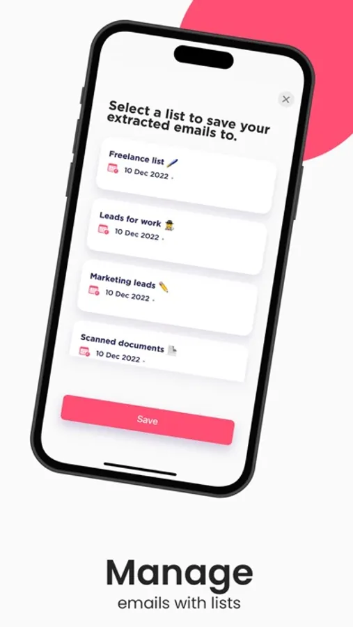 Store your lists in cloud storage and access all your saved email addresses from connected devices.
