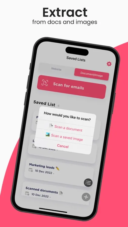 When it comes to extracting data from documents and images, the built-in scanner tool will go through your images and documents and extract all the email addresses for you.