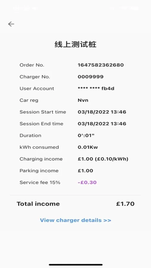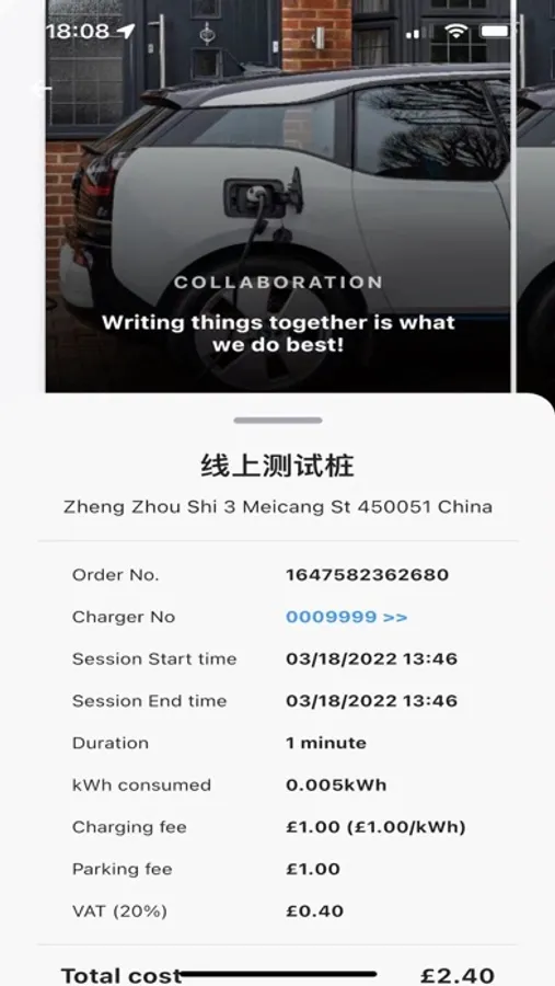 4. Live Charging Session Data: With a direct connection to the chargepoint, you will have access to live data from your charging session including electricity usage, ongoing parking cost, ongoing charging cost, and ongoing total costs.